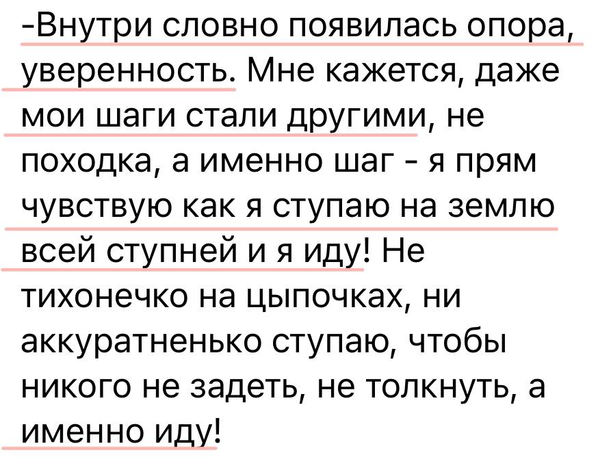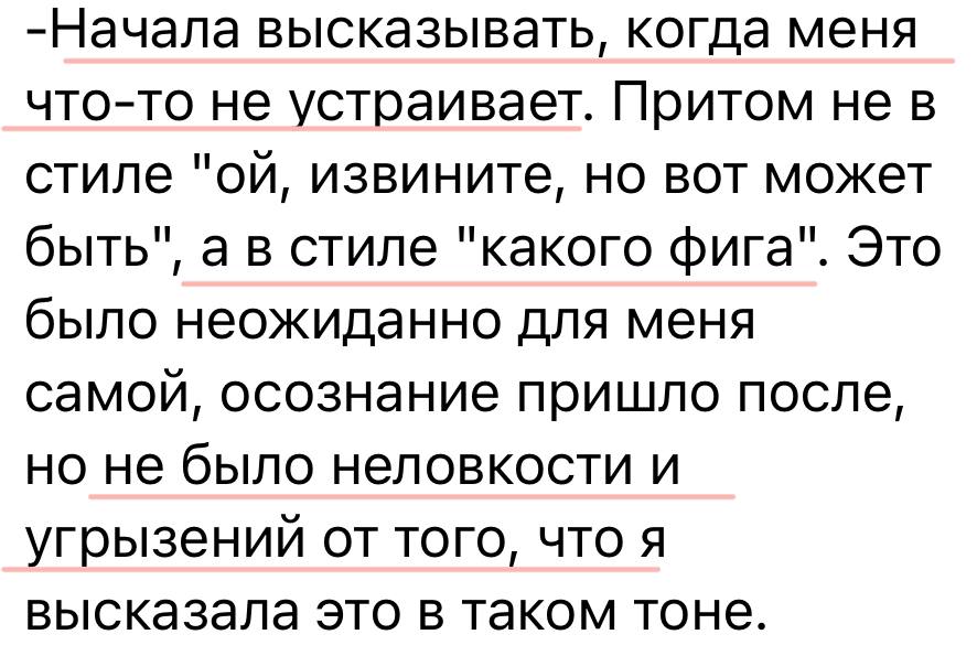 признаешь наконец все свои заслуги и достижения. Обретешь свои границы и научишься их удерживать.